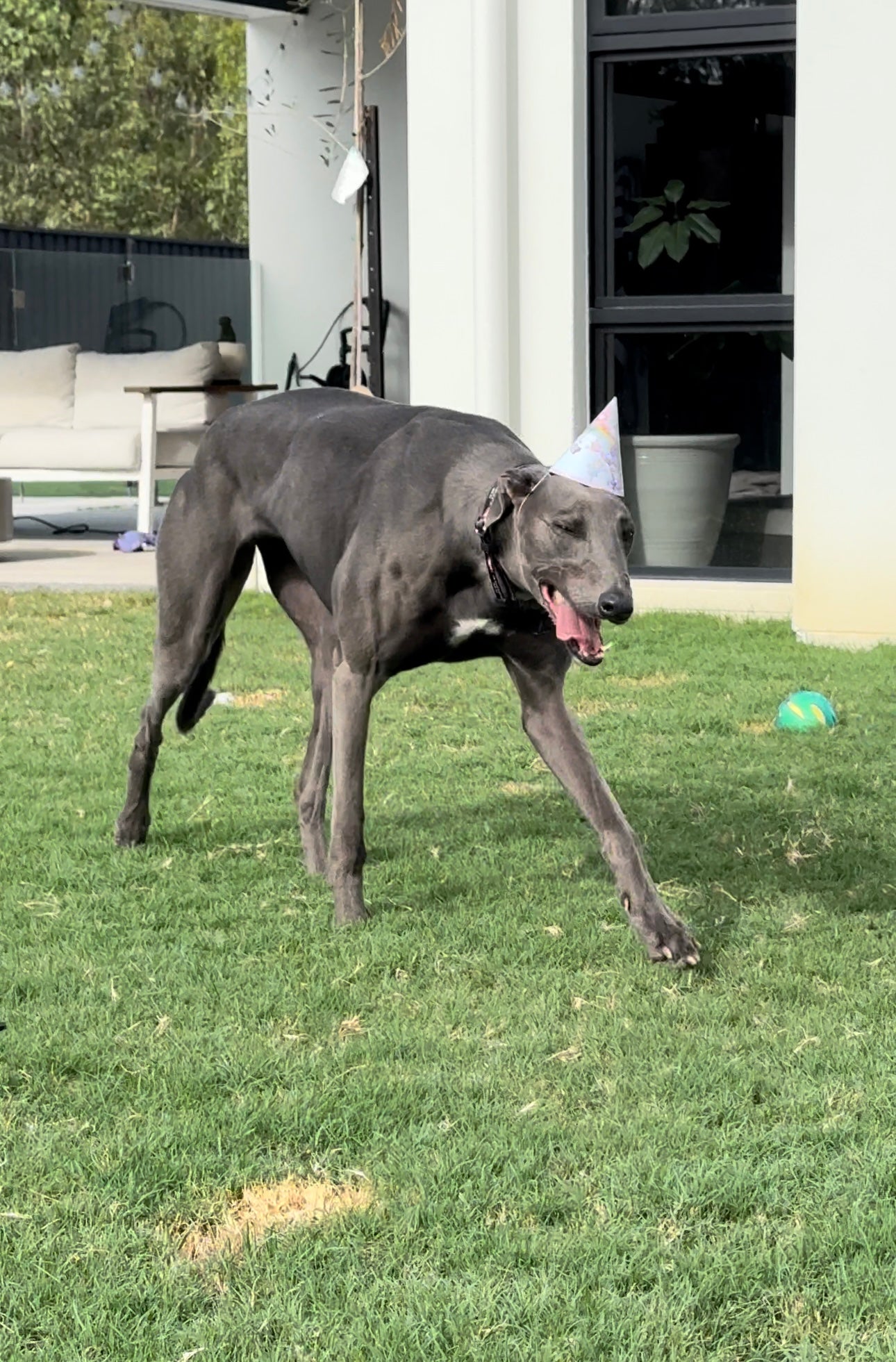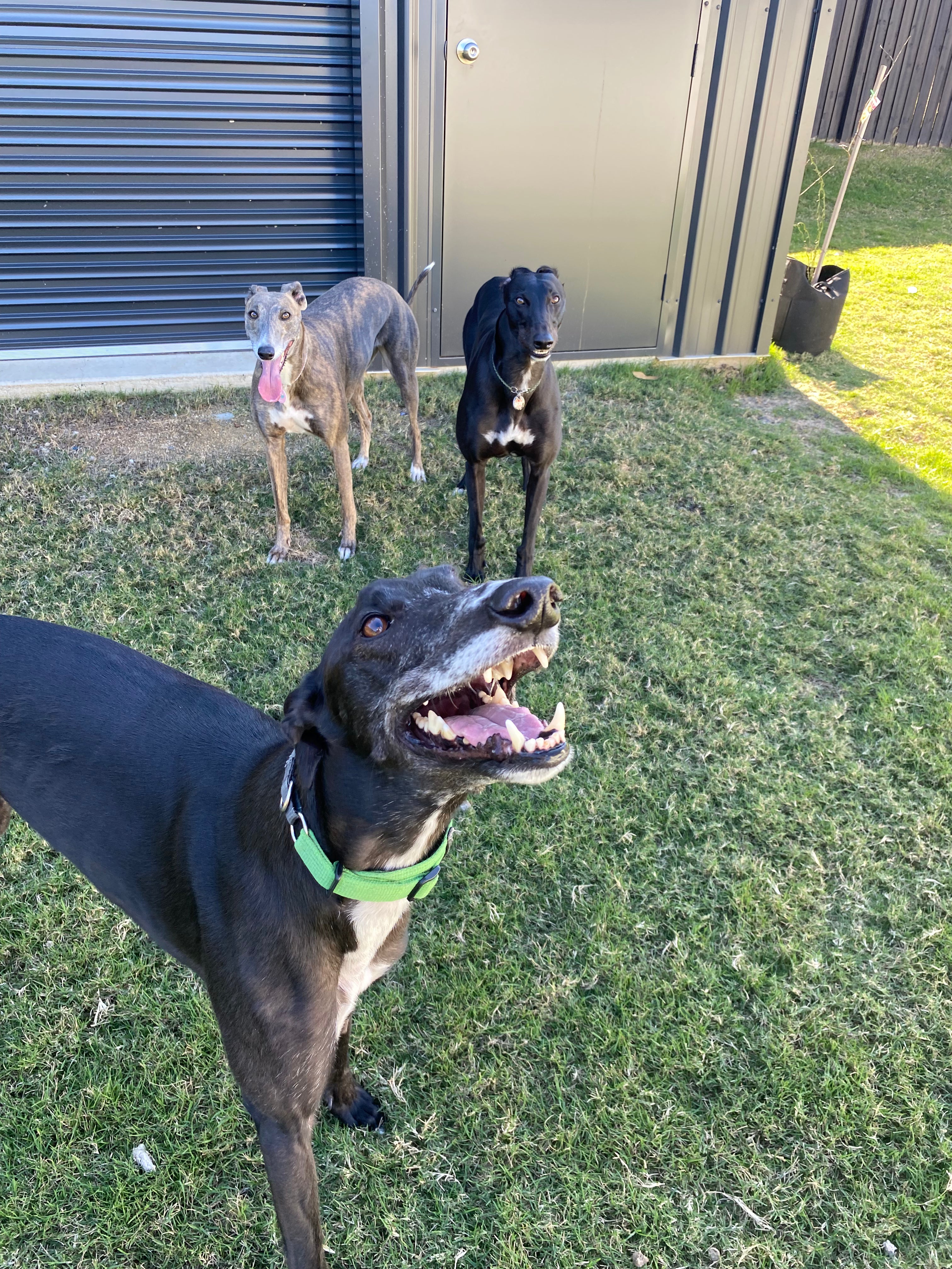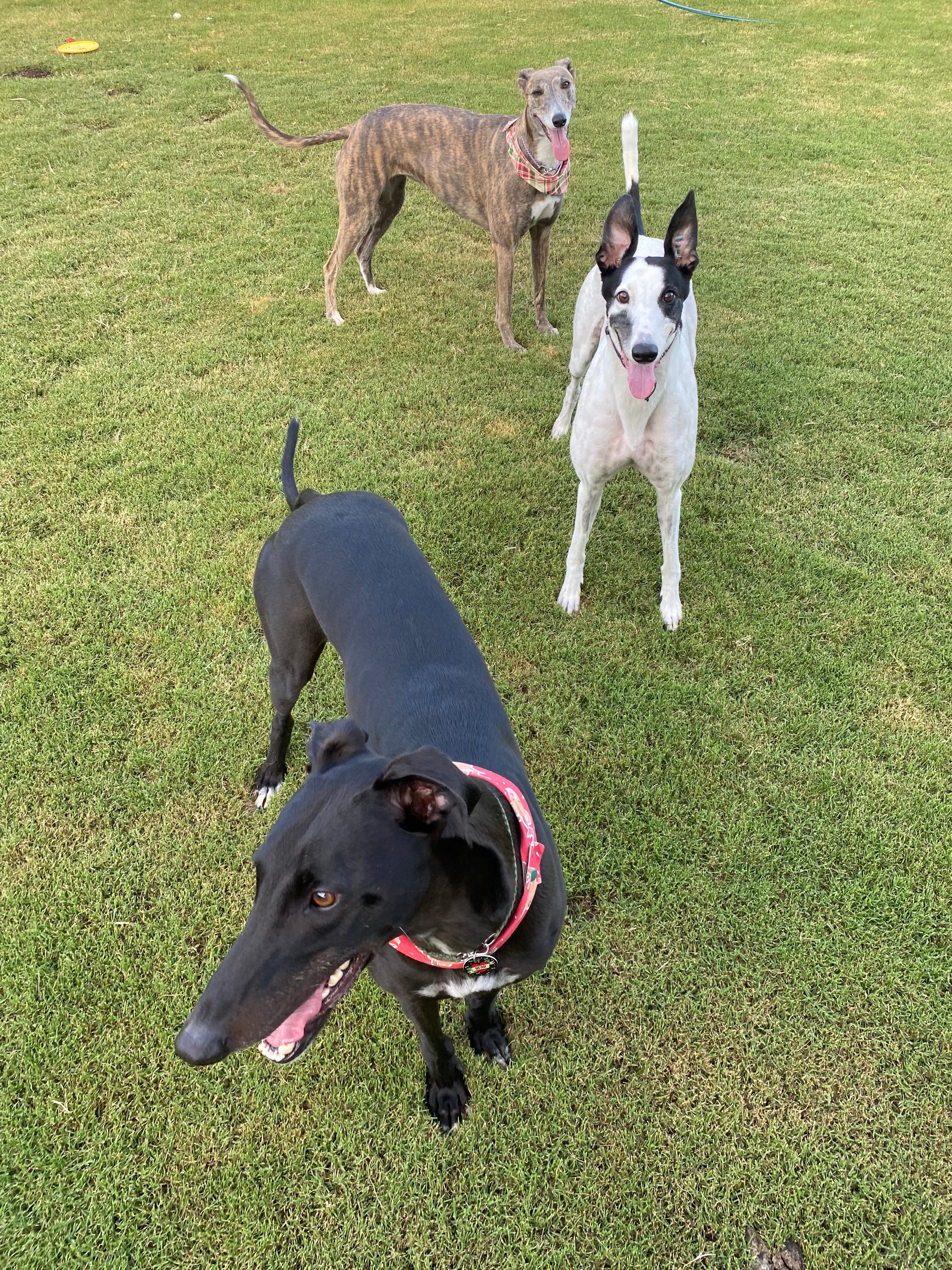 Deeks was our first foster in July 2022. He was a sweet old boy who needing rehoming due to no fault of his own. Once he was in our care we realised he was having trouble walking which ended up with him needing corn removal surgery. Love A Greyhound did not even hesitate to organise and cover the cost for this surgery and after a couple weeks he was running around with Peach & Bear like a puppy. He eventually got adopted by a lovely retired couple after 2 months with us.