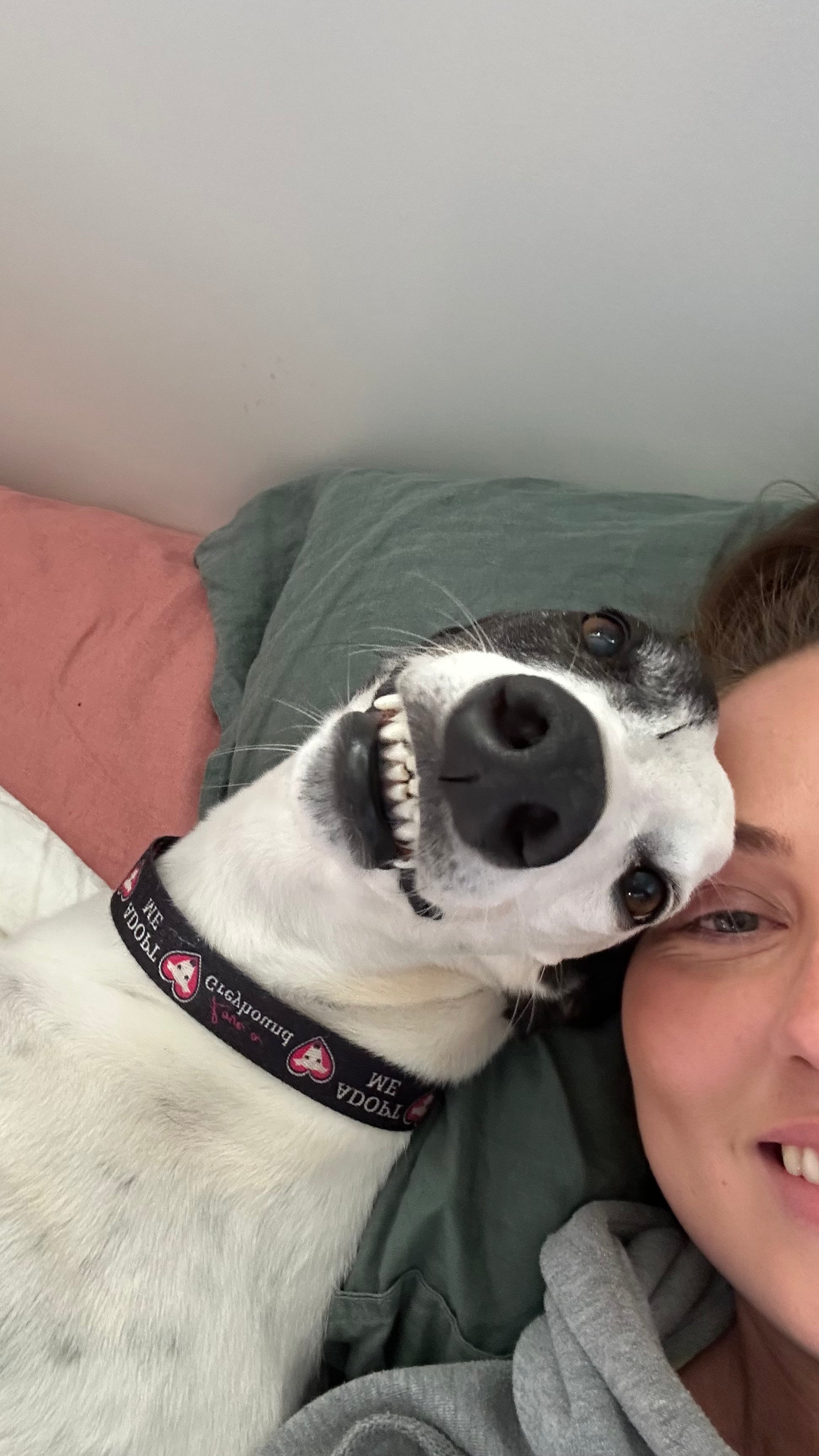 A couple weeks after Dolly left we took on a new foster, we thought we could get a quick one in before Christmas time. Her name was Luna and she never left 😂 After 7 months with us Luna still hadn't been adopted so we decided to make it offical and adopt her. This was a hard decision as it meant we no longer had room to continue fostering which was difficult for us when there is so many greyhounds needing foster homes. Although no regrets, we're so happy Lunatic is here to stay and even though we can't help out through fostering anymore we hope to bring awareness and donate towards the rehoming of greyhounds through Houndd Co ❤️