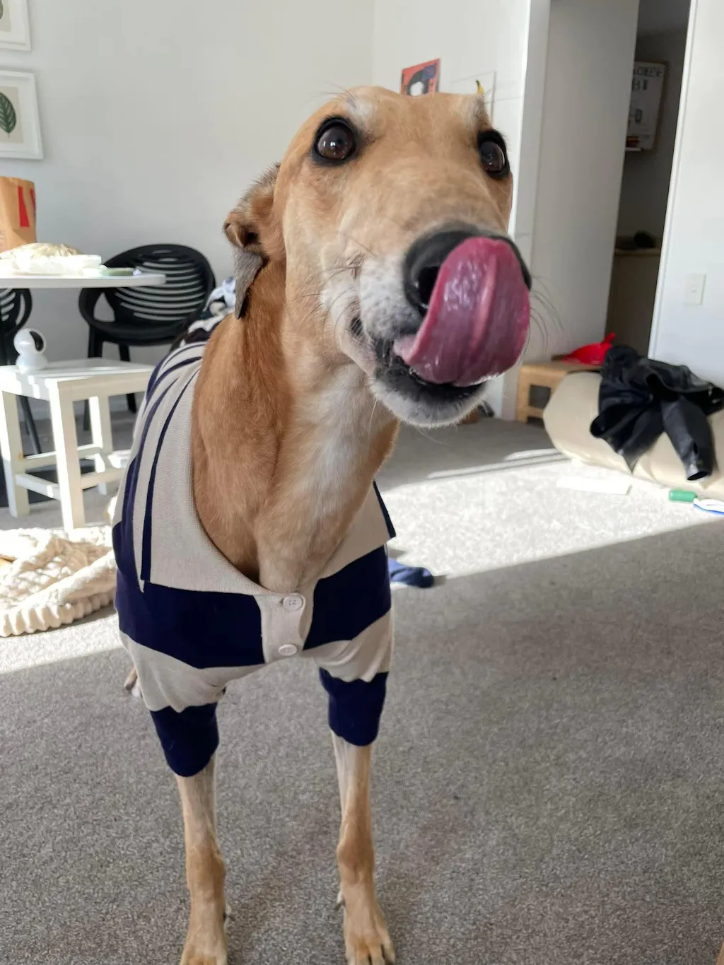 Considered Fit: Designed specifically for greyhounds, ensuring a comfy fit that isn’t too fitted and doesn't restrict movement.
